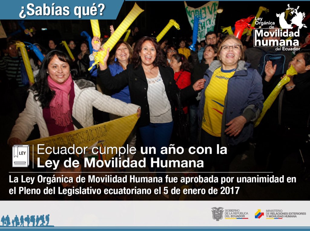 Ecuador 🇪🇨 cumple un año con la Ley Orgánica de Movilidad Humana, referente regional y mundial en garantía de derechos. #EcuadorConmigopic.twitter.com/s38yWOmyJU