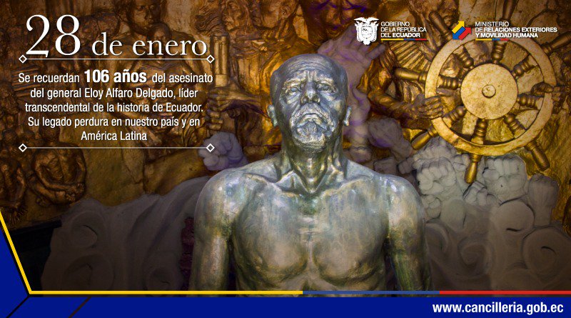 Conmemoramos los 106 años de la Hoguera Bárbara, donde uno de los líderes más trascendentales del Ecuador perdió su vida. El legado de #EloyAlfaro perdura en nuestro país y toda América Latina.pic.twitter.com/KCvfQJbWhf