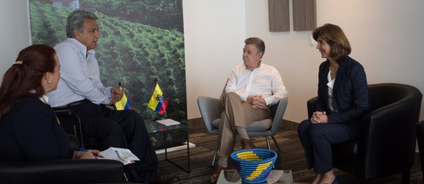 Previo a la inauguración del VI Gabinete Binacional, Presidente @Lenin Moreno junto a Canciller @mfespinosaEC mantuvieron reunión bilateral con el mandatario de Colombia, @JuanManSantos #EncuentroColombiaEcuadorhttps://twitter.com/CancilleriaCol/status/964186677349638144 …