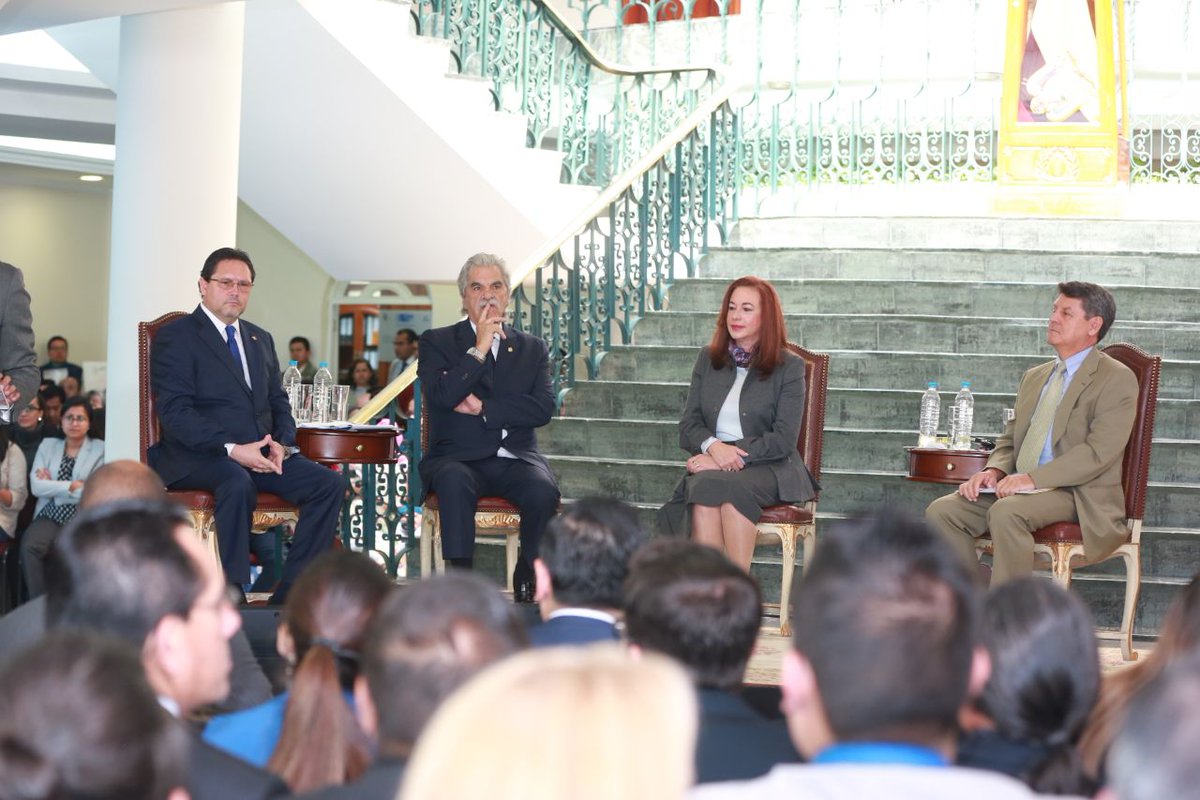 Se encuentran presentes en el evento de Rendición de Cuentas del Sector Externo del período 2017, la Canciller @mfespinosaEC, los Ministros @RaPerezTorresEc , @PonceDeLeonEC, y Humberto Jiménez, viceministro de @ComercioExtEc #RendiciónDeCuentas2017pic.twitter.com/1FsqDxa7sE