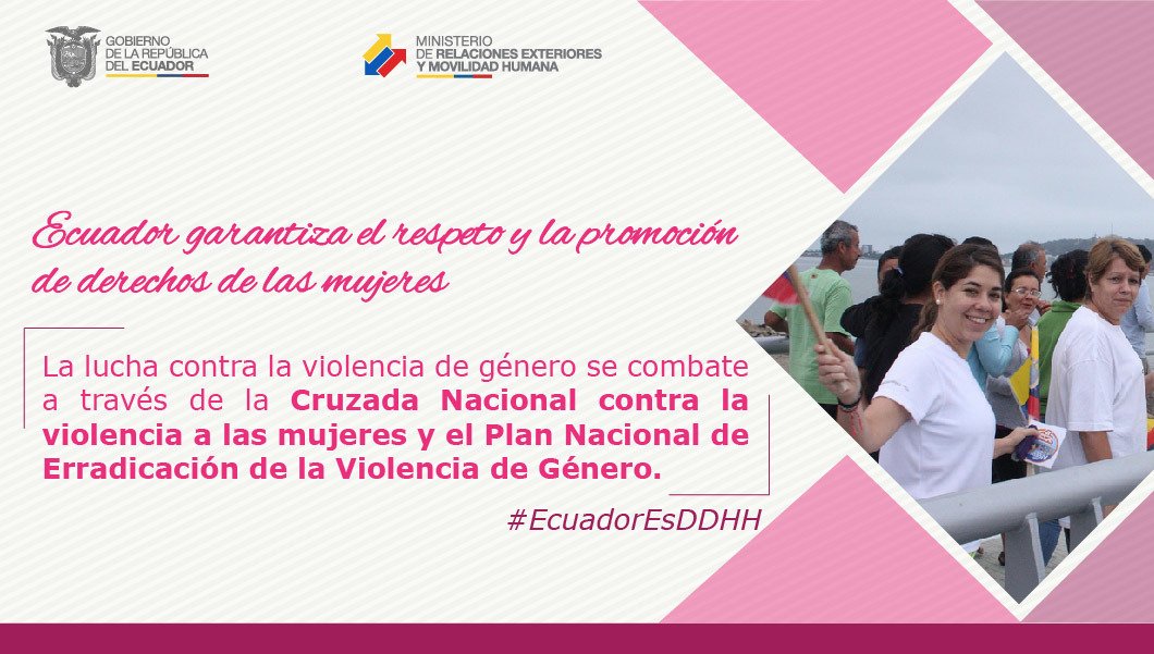 El Ecuador garantiza el respeto y la promoción de los derechos humanos de las mujeres. https://goo.gl/8meBRv #EcuadorEsDDHH