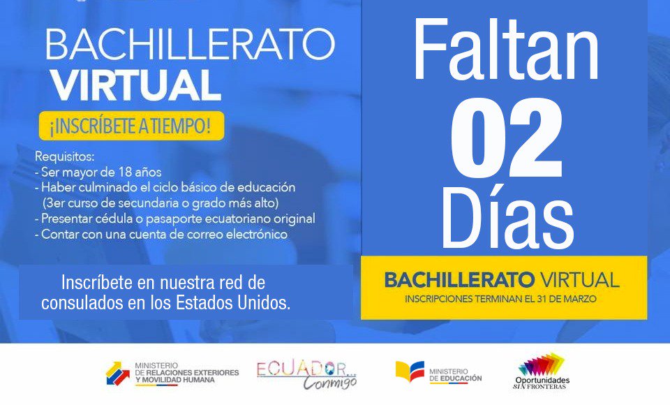 Ecuatoriano en #EEUU ➤ No te quedes sin culminar tus estudios. Inscríbete en el Bachillerato a Distancia en los consulados del Ecuador