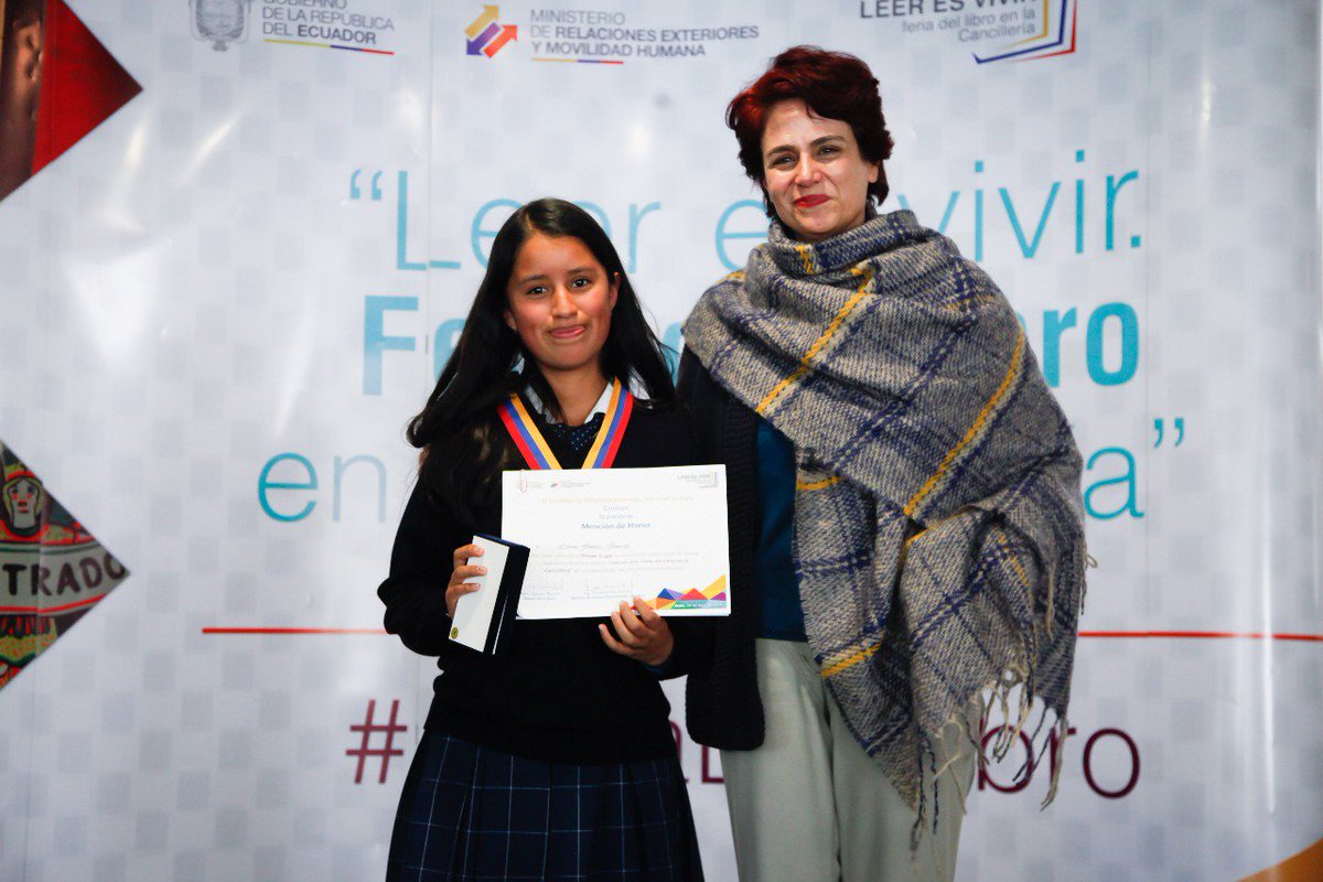 Ganadores del concurso intercolegial de lectura en la #FeriadelLibro en @CancilleriaEc: