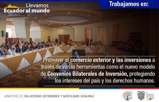 | Con la presentación del nuevo modelo de Convenios Bilaterales de Inversiones buscamos promover el comercio exterior y las inversiones protegiendo los derechos del país y los derechos humanos.pic.twitter.com/bSgaRHgAuq