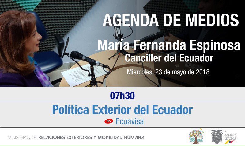 Hoy - 07h30 | Invitamos a seguir la entrevista a la canciller @mfespinosaEC en @ecuavisa sobre varios temas de la #PolíticaExteriorEcpic.twitter.com/4HLrYietL7