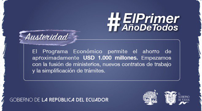 #ElPrimerAñoDeTodos | El Ecuador tiene un Gobierno más eficiente. Optimizamos recursos, implementamos un régimen de austeridad fiscal y la reducción de trámites. Así cuidamos el dinero de todos los ecuatorianos.pic.twitter.com/7zkbONN3eT