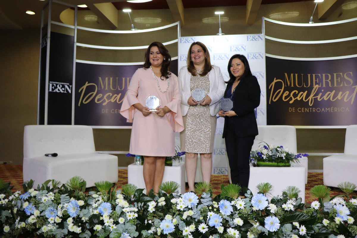 La revista @Revista_EyN & Negocios del Grupo #OPSA entregó reconocimiento a las tres panelistas del foro "Mujeres Desafiantes de Centroamérica", la Canciller @Mdaguero17 , la empresaria Min Chen y la directora de Medicina Forense Julissa Villanueva.pic.twitter.com/H9hsBnZNyF
