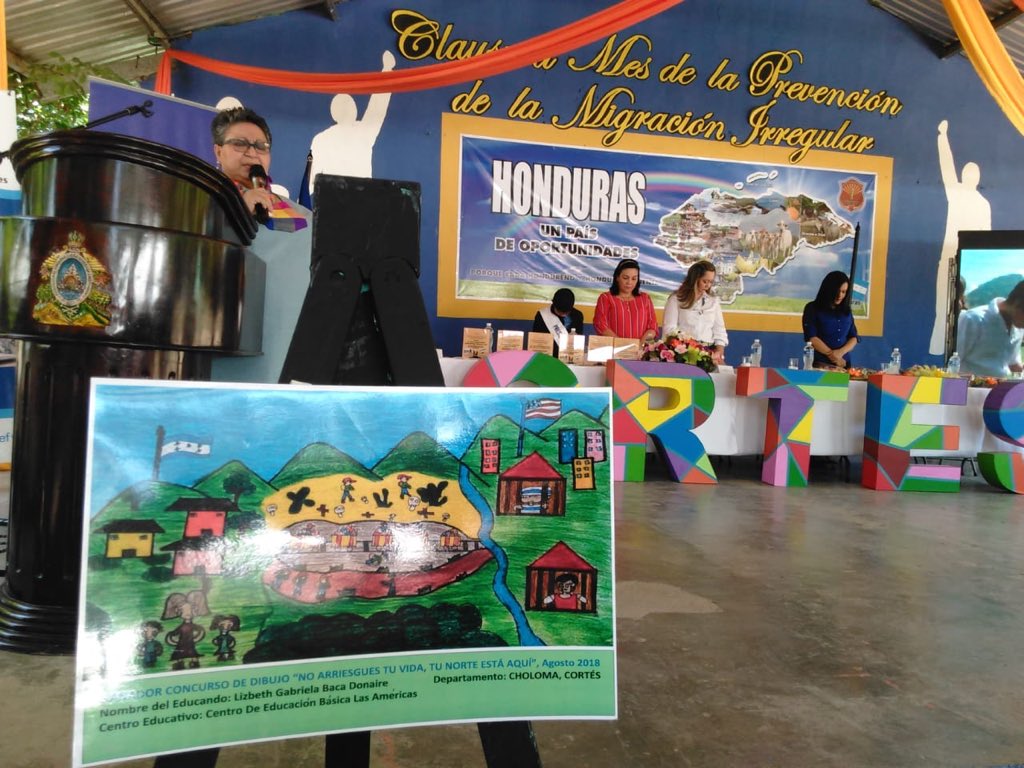 Gloria Menjivar de la Secretaría de Educación y otros representantes de instituciones que componen La Fuerza de Tarea de Atencion al Migrante, cerrando las actividades del mes de la prevencion de la migración irregular, organizado por la Cancilleria.pic.twitter.com/kBzq08Gq2f
