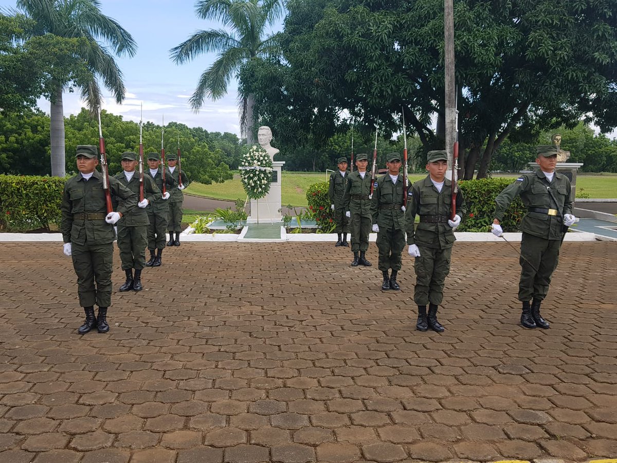 #Managua . La @EmbajadaHND_NIC rindió homenaje al general Francisco Morazán Quezada colocando ofrenda floral en el monumento del paladín ubicado en la Plaza Central de los Próceres del del Centro Superior de Estudios Militares General José Dolores Estrada Vado.