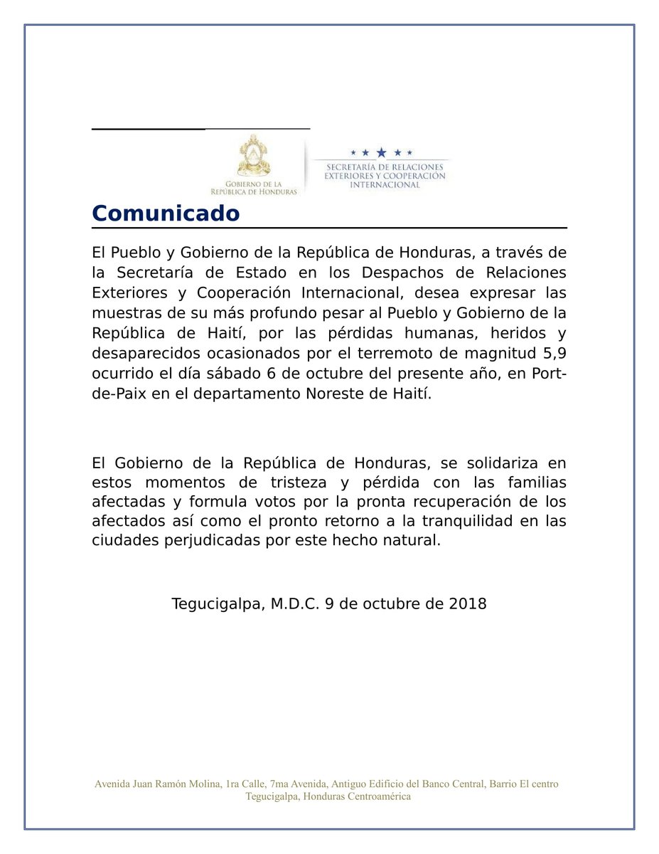 Comunicado de Solidaridad con el Pueblo y Gobierno de #Haití 🇭🇳🇭🇹pic.twitter.com/25rdkvCmOn