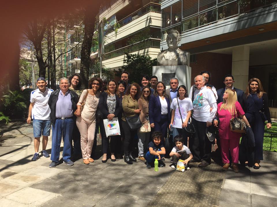La Emb. de Honduras en la Argentina conmemoró junto con la comunidad hondureña, guatemalteca, salvadoreña y nicaragüense el aniversario del nacimiento del General José Francisco Morazán Quezada, colocando una Ofrenda Floral en el busto del procer en la plazoleta de Buenos Aires.pic.twitter.com/pbQaWMPsNL