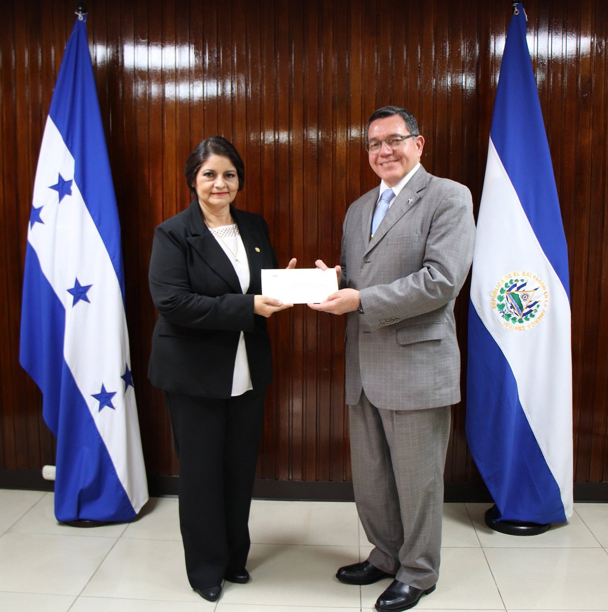 La nueva Embajadora de El Salvador, Marina Yudis Peña Flores, presentó hoy Copias de Estilo ante el Vicecanciller Isaías Barahona Herrera.