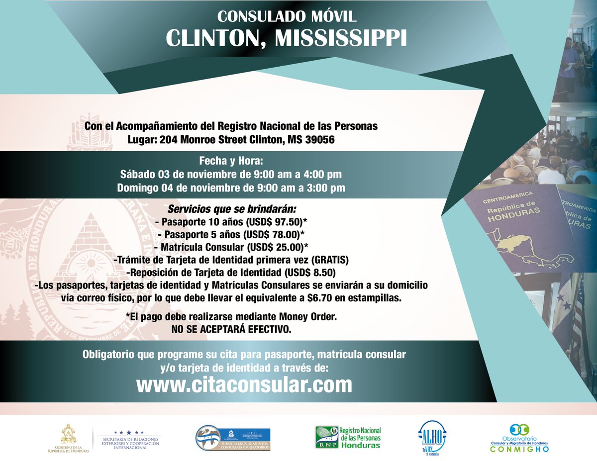 CONSULADO MÓVIL para todos los hondureños en Clinton, Mississippi