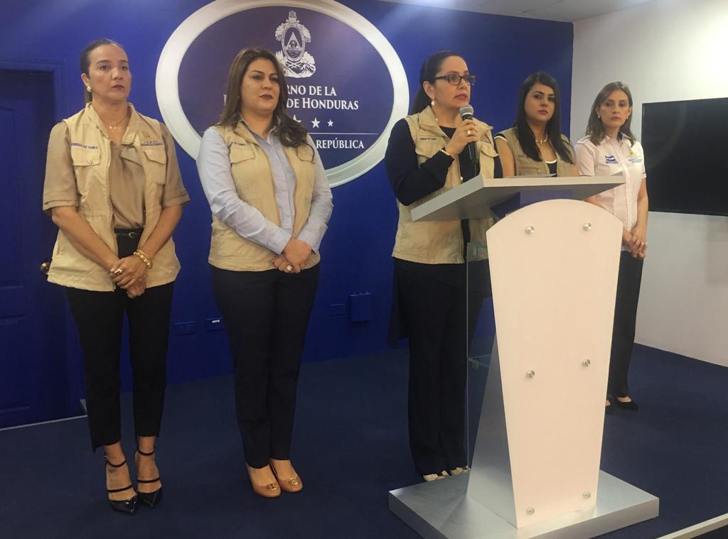 La Canciller @Mdaguero17 y la Vicecanciller @NellyJerez_ acompañaron a la primer dama @anagarciacarias junto a la directora de @migracionhn y @sedhHonduras a la comparecencia de prensa sobre las acciones de gobierno sobre las atenciones a la movilización migratoria.pic.twitter.com/h7DUCR72s9