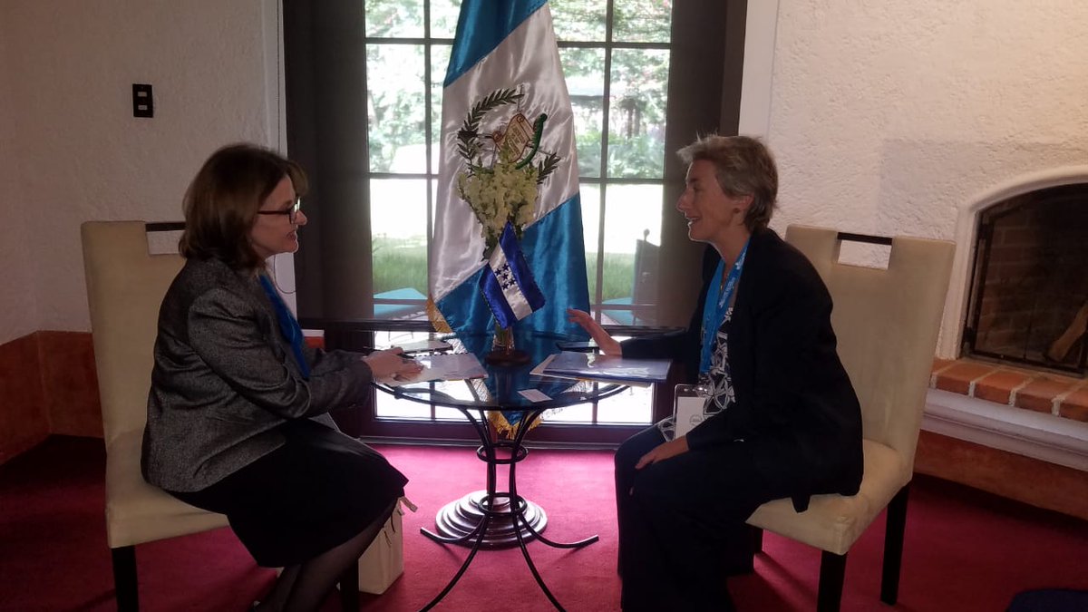#Honduras en la #26CumbreGT . Hoy reunión entre la Vicecanciller María del Carmen Nasser y Paola Amadei, Directora Ejecutiva de la Fundación Unión Europea-América Latina y el Caribe #EULAC #somosIberoamericapic.twitter.com/4jGwkmer1H