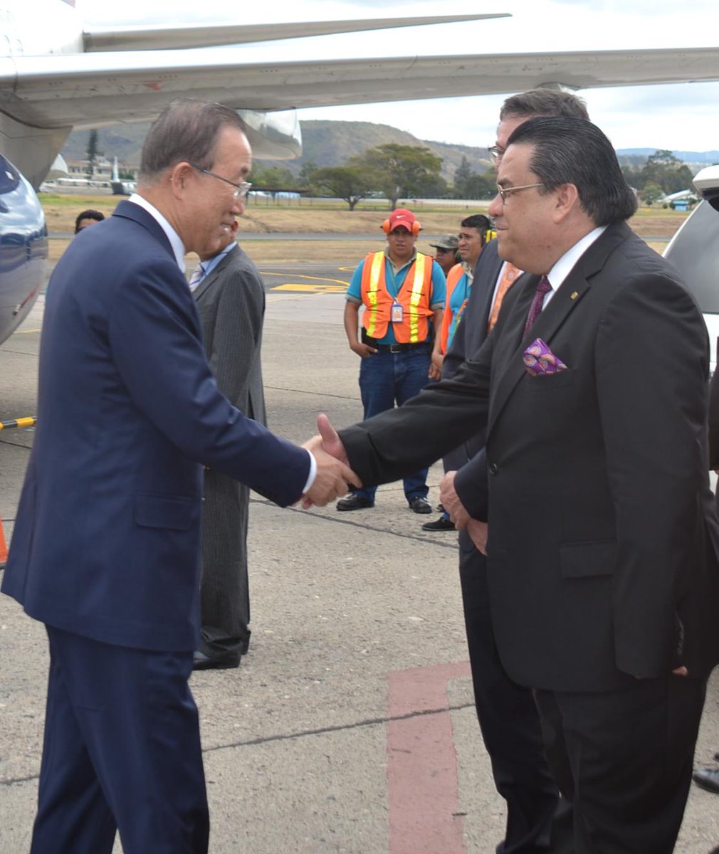 El Canciller Arturo Corrales Álvarez recibió hace unos minutos al SG de las Naciones Unidas, Ban Ki-moonpic.twitter.com/0mvmv3qL8c