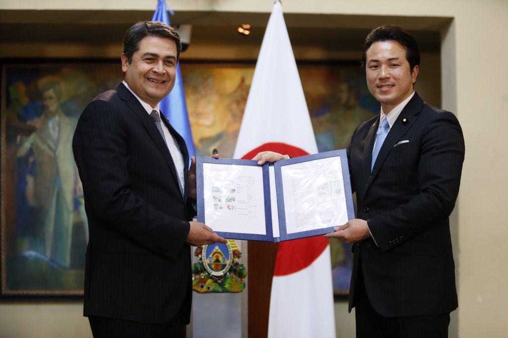 Vicem RREE del Japón: felicito al Presidente @JuanOrlandoH por la reducción de tasa de homicidios y déficit fiscal.pic.twitter.com/73gk5ZJYSA