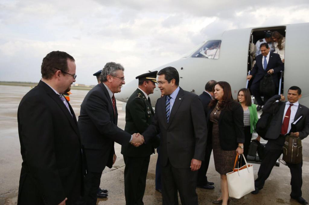 Presidente @JuanOrlandoH y Primera Dama @anagarciacarias recibidos por Emb de Honduras en Washington, Jorge Milla.pic.twitter.com/PBLBrU9DqQ