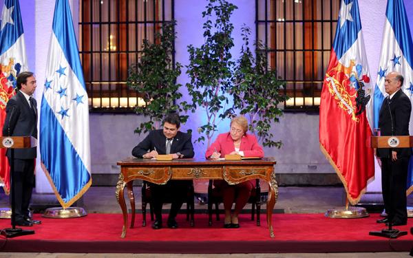 Hernández y Bachellet fortalecen lazos de cooperación entre Honduras y Chile. Más en http://www.sre.gob.hn pic.twitter.com/GBxVstG7UR