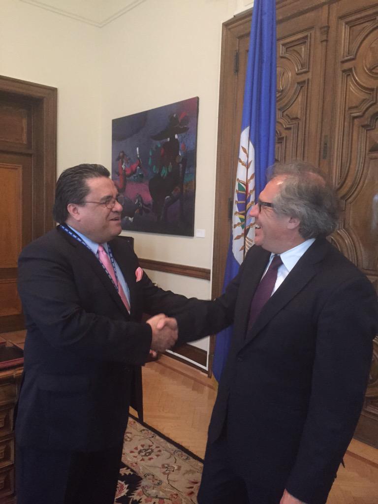 Canciller Corrales se reúne con Secretario General de @OEA_oficial @Almagro_OEA2015 , en el marco de Asamblea #45OEApic.twitter.com/nSZ3vJEENl