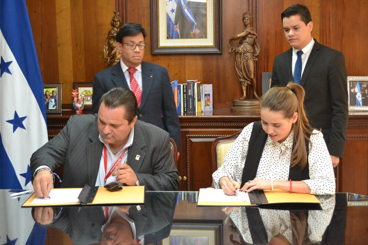 Vicecanciller @mariandreamc y Presidente @cruzrojahon firman convenio para la administración CAM Retornado de Omoapic.twitter.com/kpaUBGjEc7