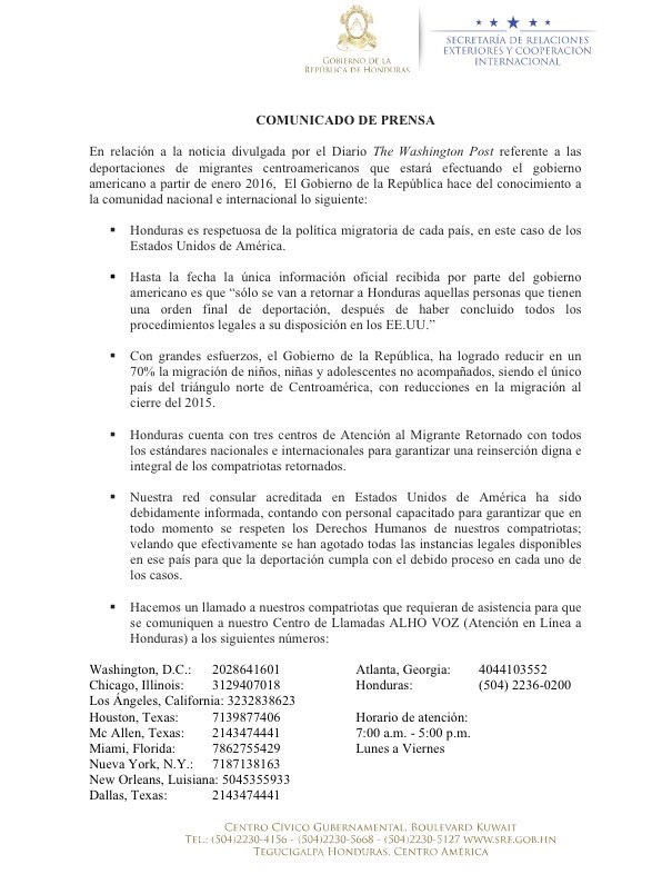 Cancillería Honduras‏ @CancilleriaHN 28 Dec 2015