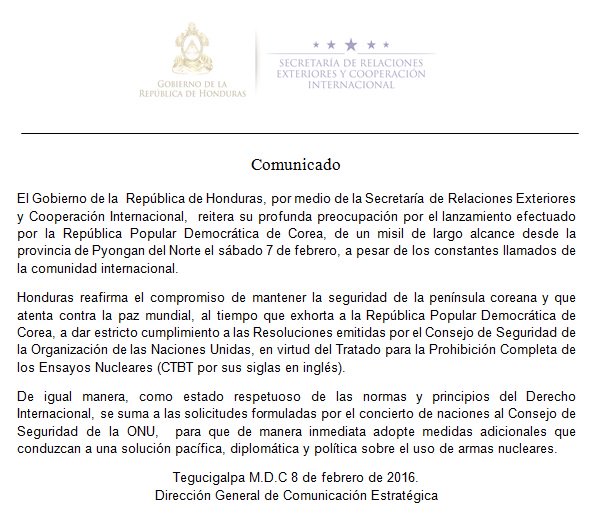 Cancillería Honduras‏ @CancilleriaHN 9 Feb 2016