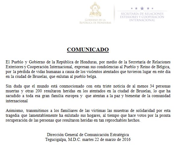 Cancillería Honduras‏ @CancilleriaHN 22 Mar 2016