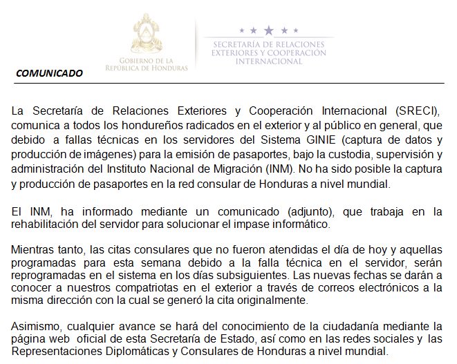 Comunicado. La SRECI comunica a todos los hondureños radicados en el exterior y al... http://www.sre.gob.hn pic.twitter.com/zcCoMQxpW3