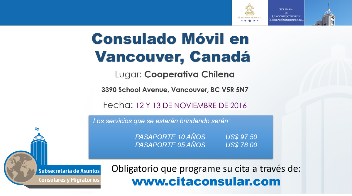 Próximo 12 y 13 de noviembre consulado móvil en Vancouver, Canadápic.twitter.com/3h9Aowe1uo