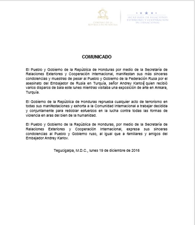 Cancillería Honduras‏ @CancilleriaHN 19 Dec 2016