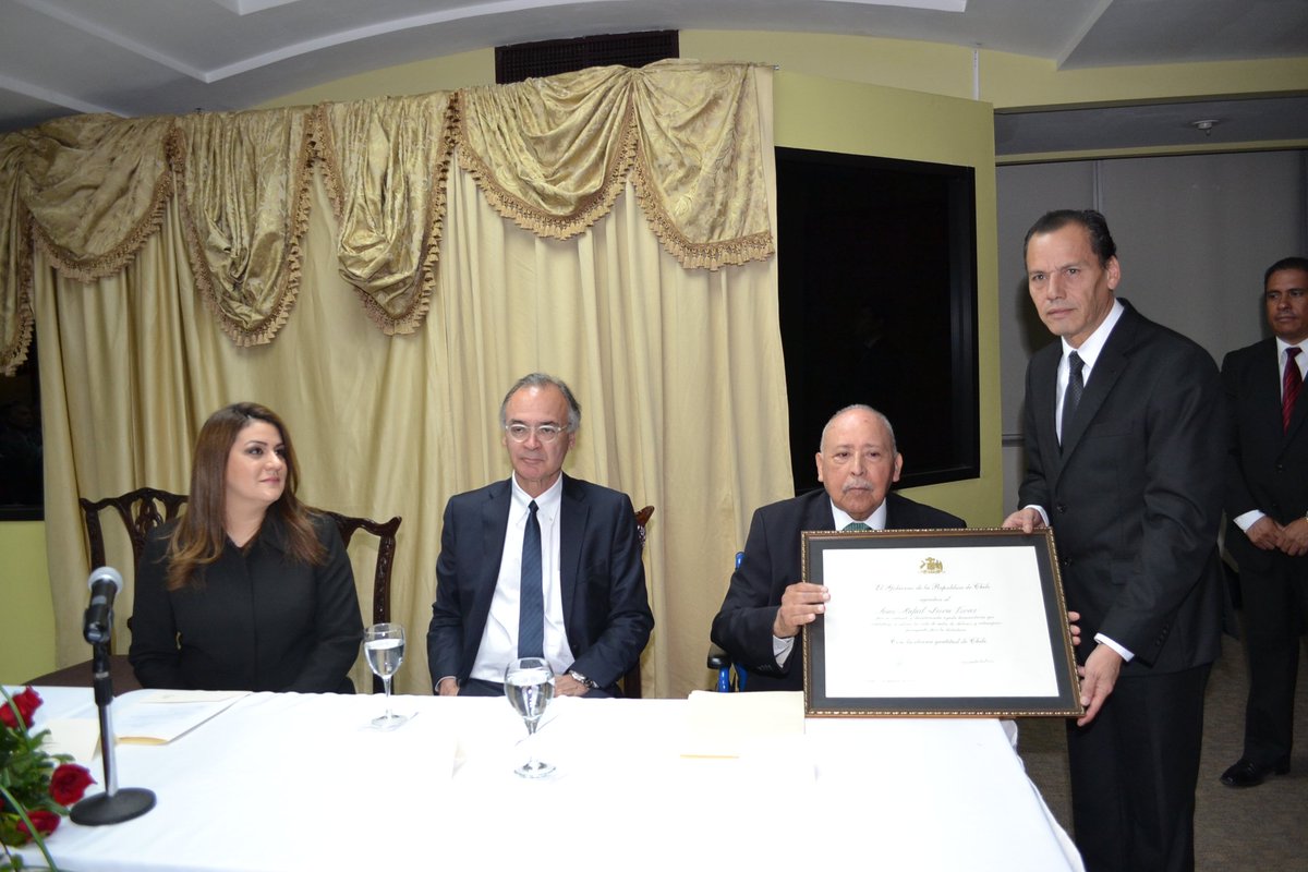 Emb. de Chile, Jaime Bravo Oliva reconoce destacada labor del Señor Rafael Leiva Vivas en su país durante su gestión.pic.twitter.com/1Y2sJPzxL7