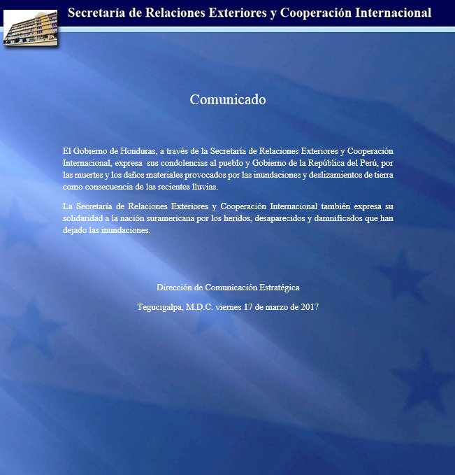 Twitter oficial de la Secretaría de Relaciones Exteriores y Cooperación Internacional de Honduras