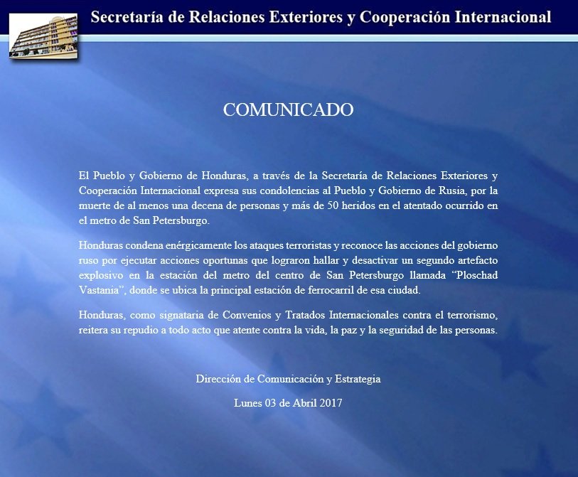 Twitter oficial de la Secretaría de Relaciones Exteriores y Cooperación Internacional de Honduras