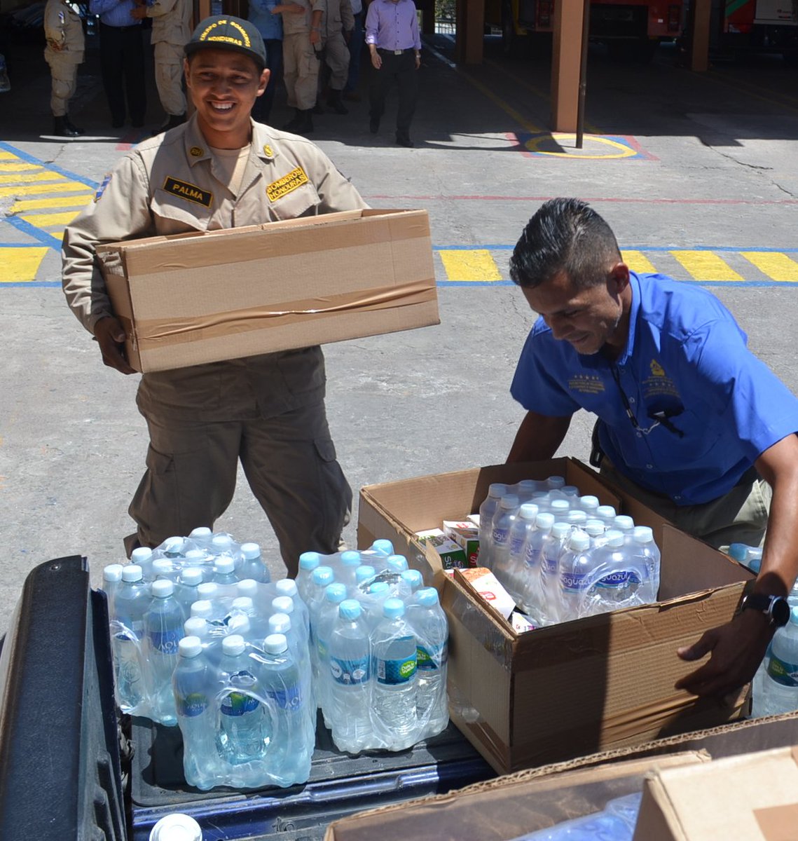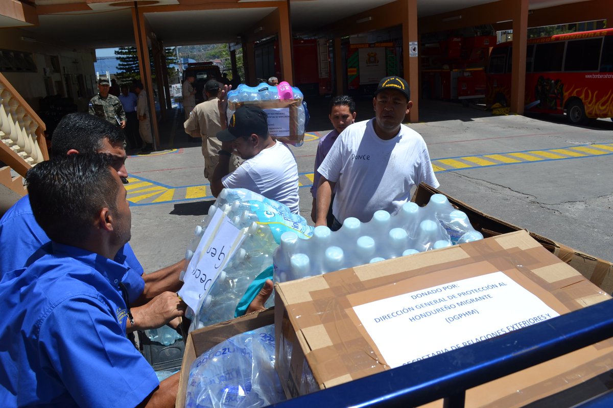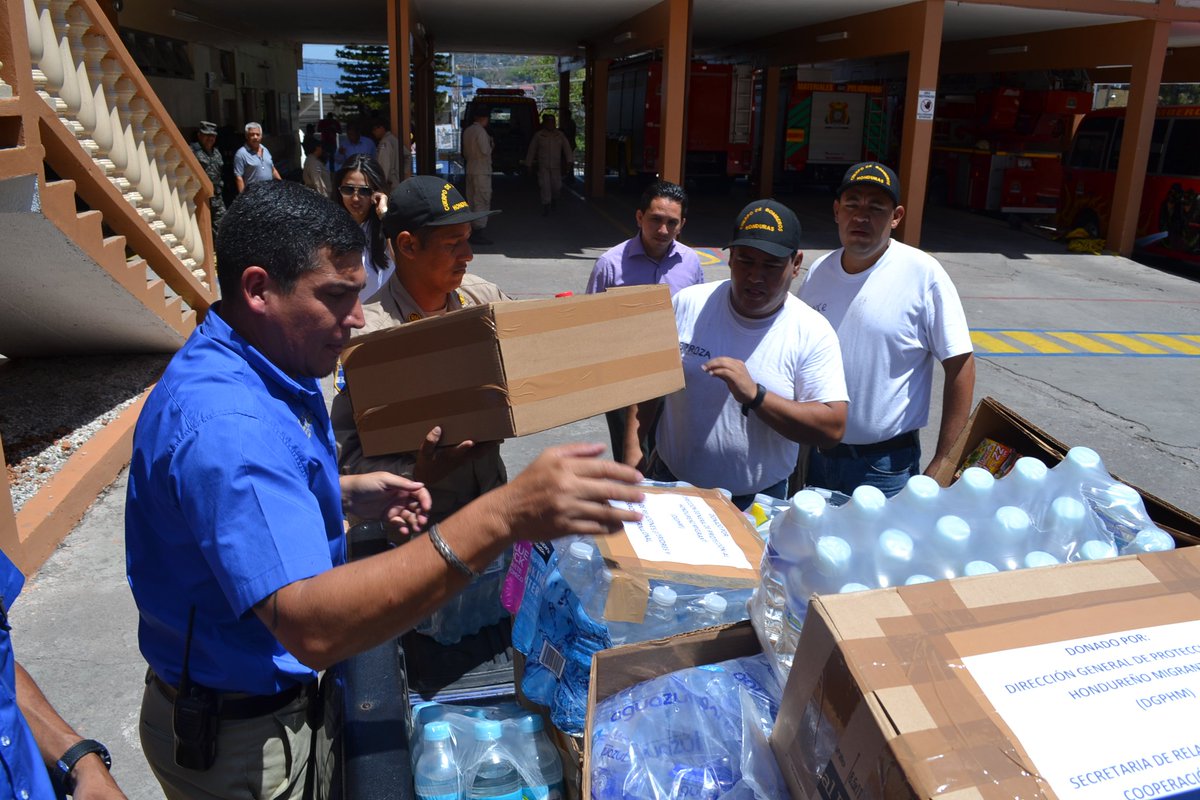 Funcionarios de @SRECIHonduras reconocieron la labor de @BomberosHn con entrega de una donación de víveres.pic.twitter.com/Yw6DoZN5Lr