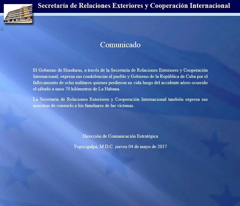 Twitter oficial de la Secretaría de Relaciones Exteriores y Cooperación Internacional de Honduras
