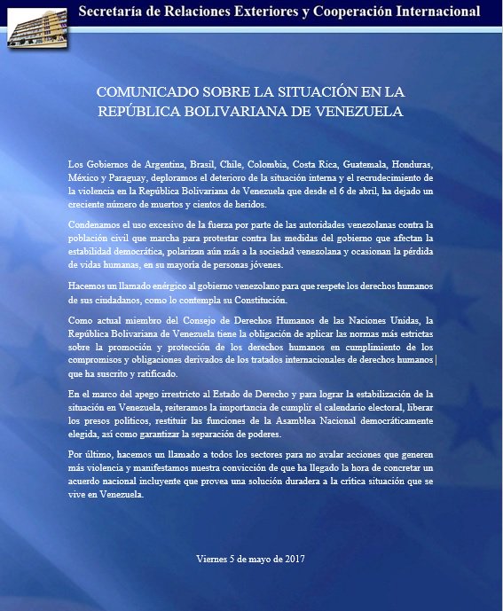 Cancillería Honduras‏ @CancilleriaHN 5 May 2017