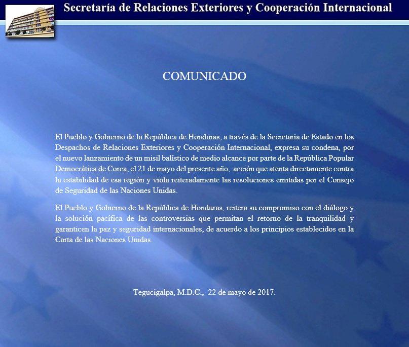 Twitter oficial de la Secretaría de Relaciones Exteriores y Cooperación Internacional de Honduras