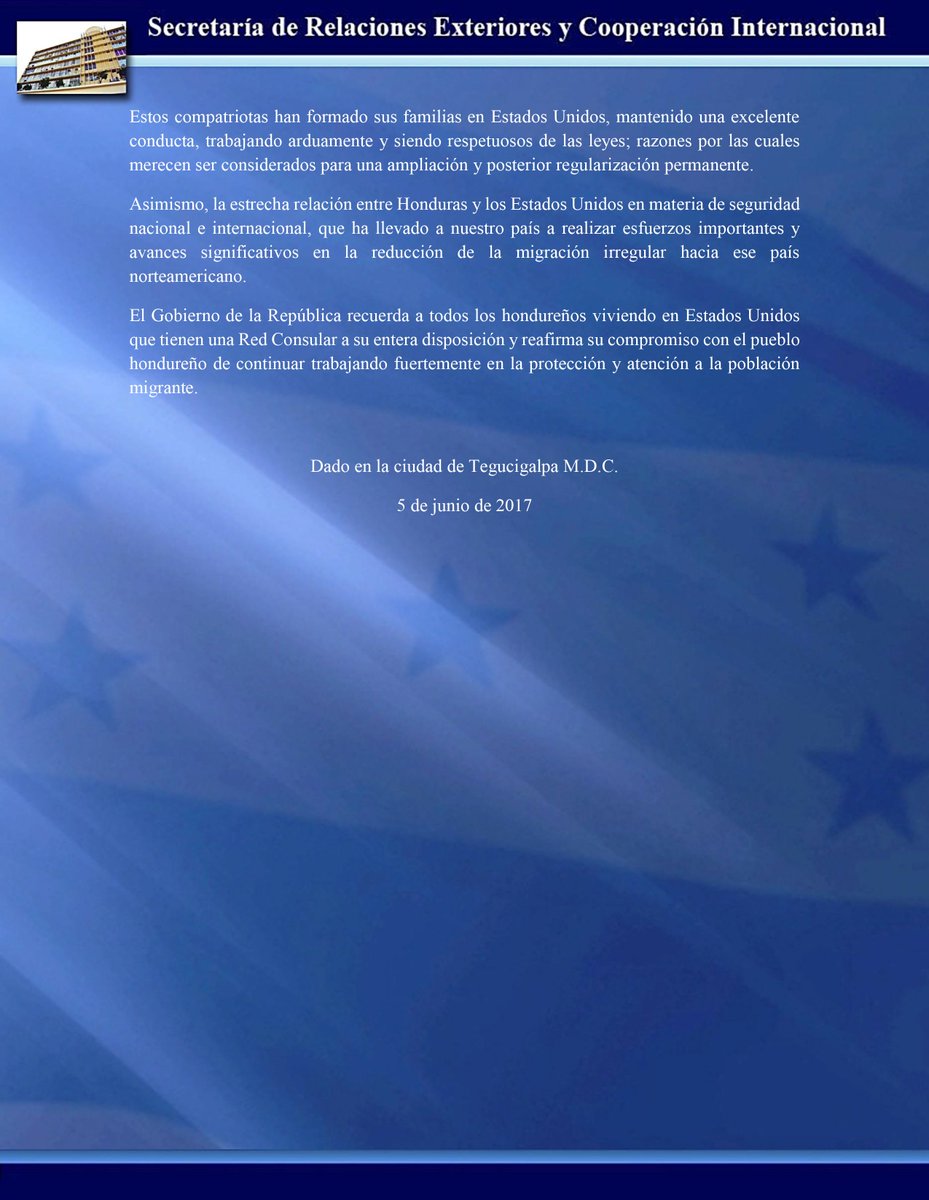 Comunicado oficial del Gobierno de Honduras sobre el estatus de protección temporal (TPS)pic.twitter.com/WHcJs5T02o