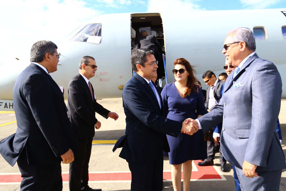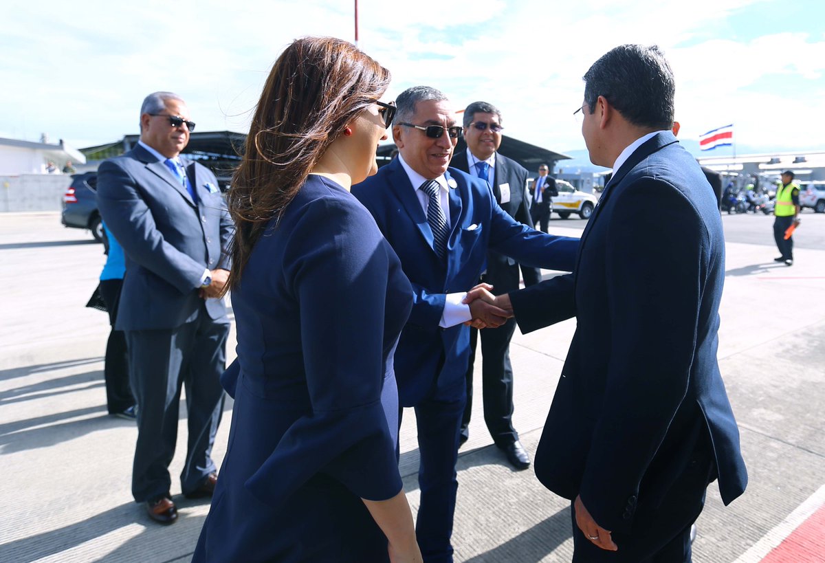 Presidente @JuanOrlandoH es recibido por la Canciller hondureña, María Dolores Agüero en Costa Rica para participar en XLIX Cumbre #SICApic.twitter.com/5GsKw3q7Q3