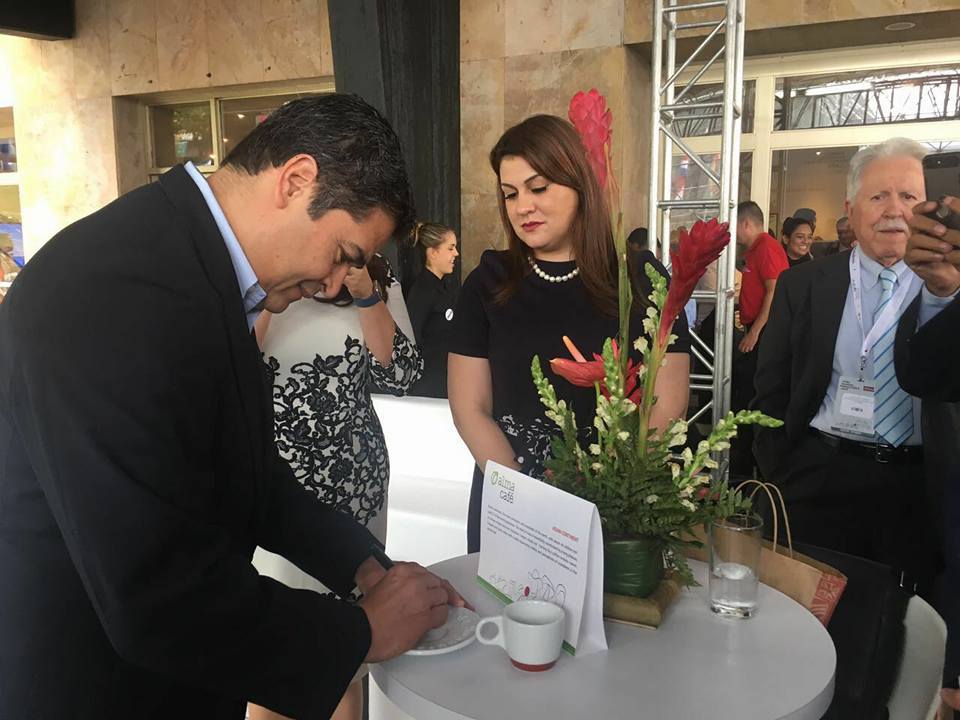 Canciller Agüero acompaña a Pdte @JuanOrlandoH en momento que estampa firma en taza para el museo de empresa japonesa Ueshima Coffee Companypic.twitter.com/PLndI1qfhy