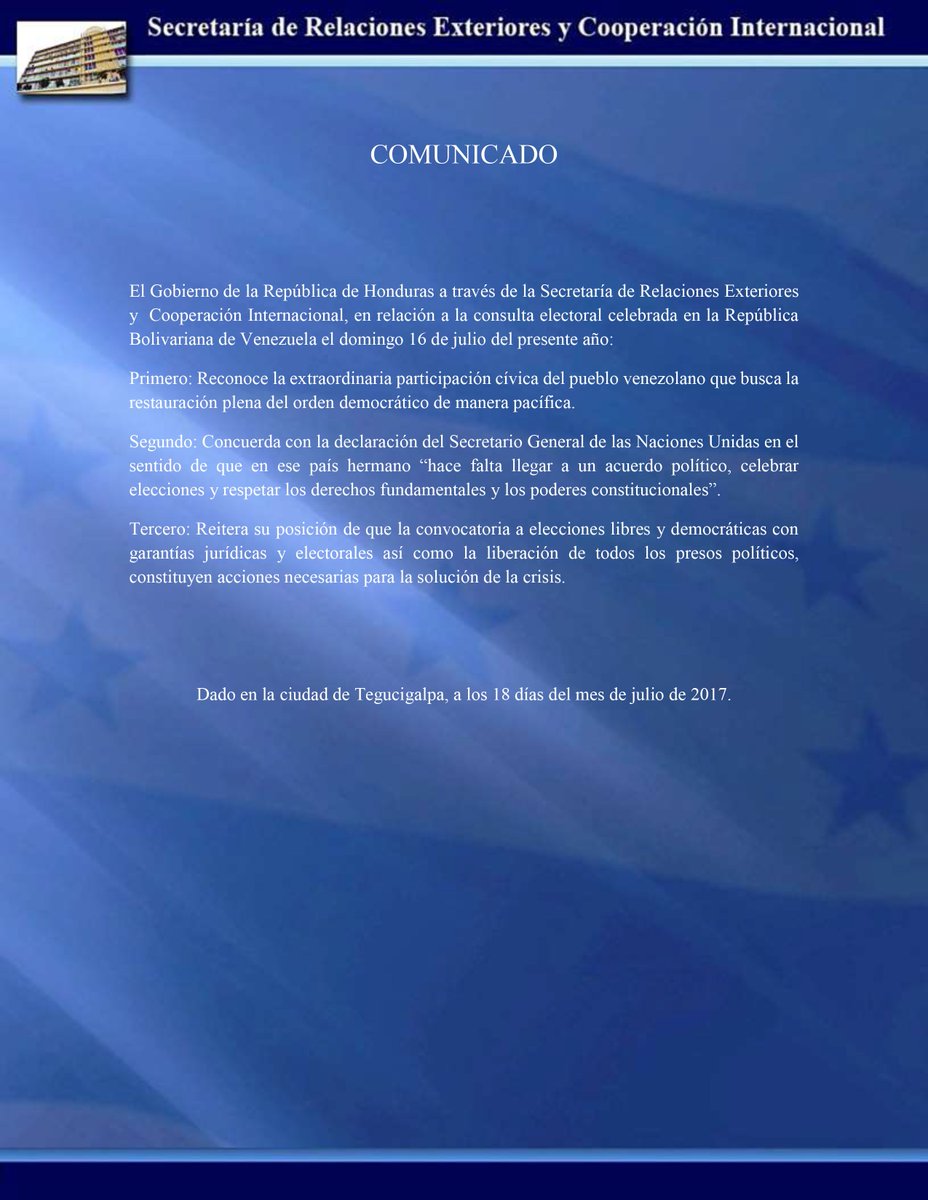 Twitter oficial de la Secretaría de Relaciones Exteriores y Cooperación Internacional de Honduras