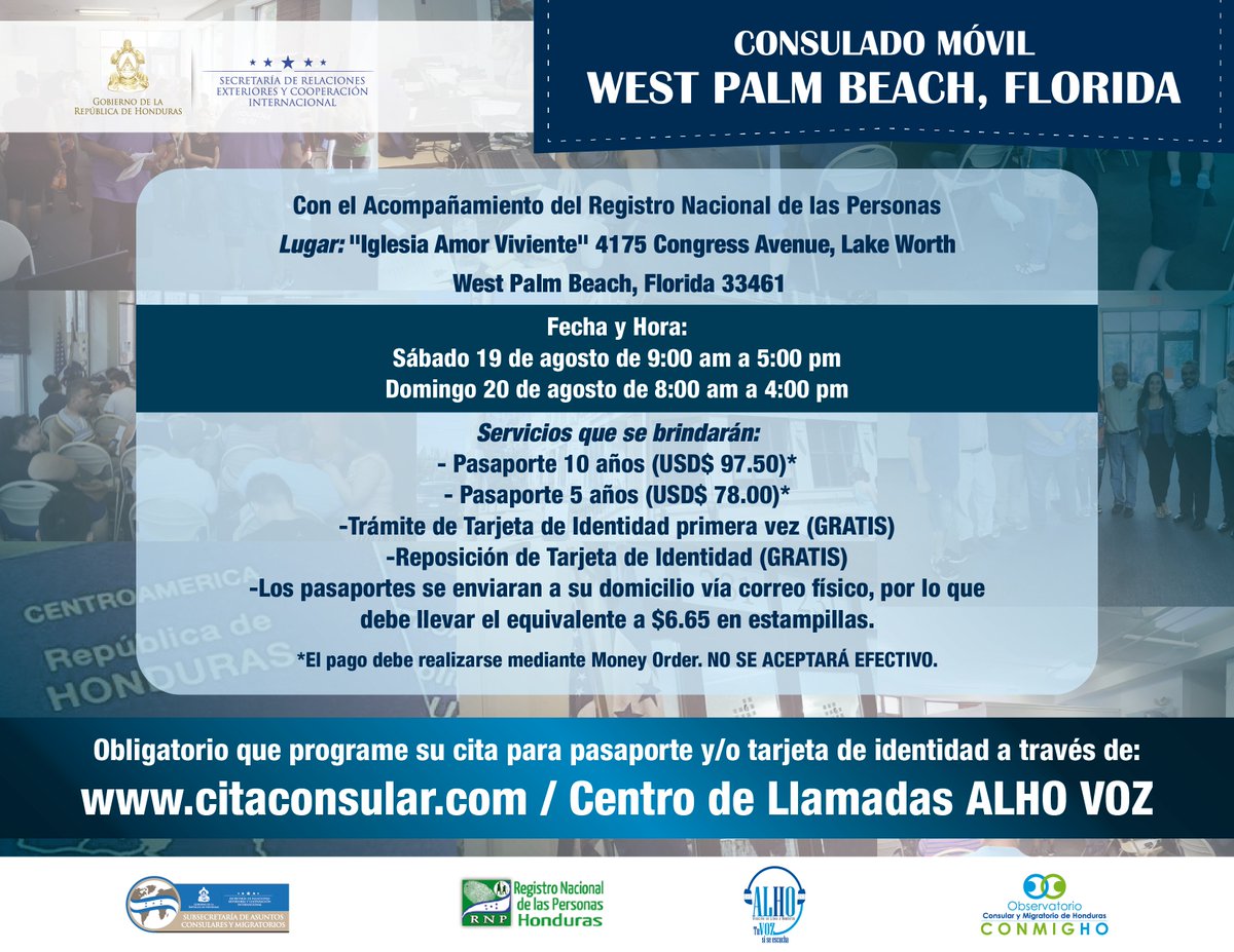 Cancillería realizará consulado móvil en West Palm Beach, Floridapic.twitter.com/Sz0z7KVVbn