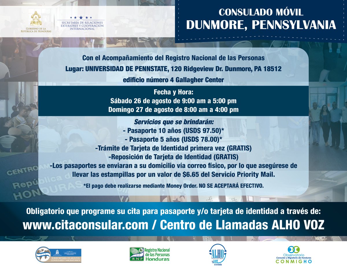 Cancillería realizará consulado móvil en Dunmore, Pensilvaniapic.twitter.com/AFmeP9gOvb