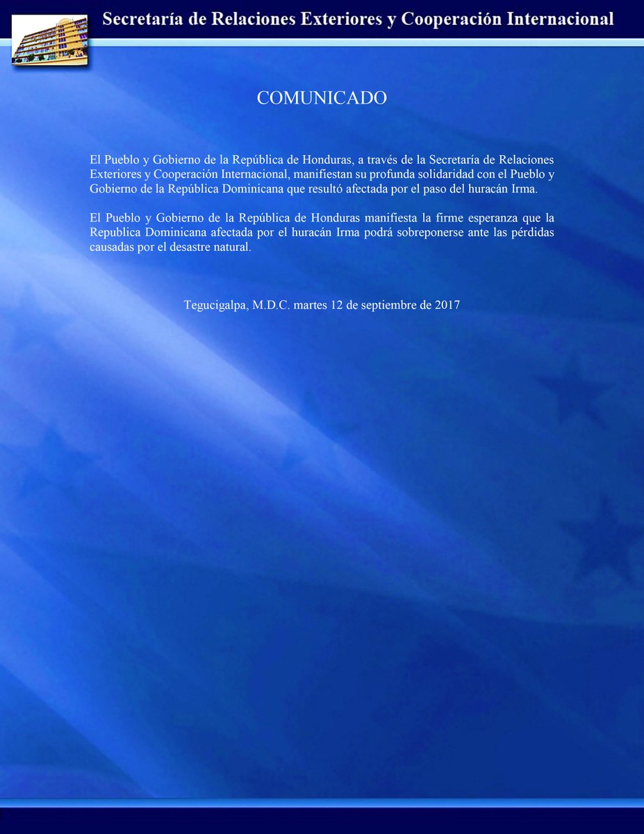 Cancillería Honduras‏ @CancilleriaHN 13 Sep 2017