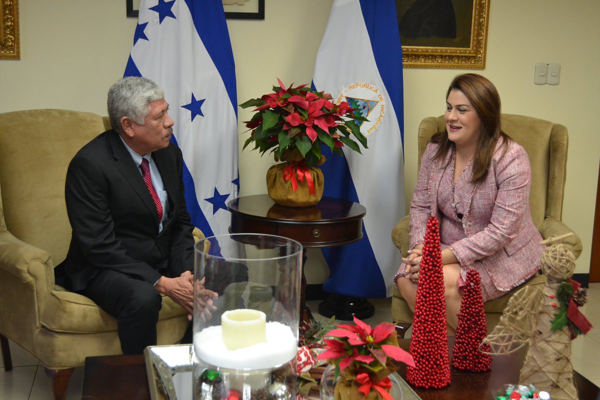 La Canciller María Dolores Agüero Lara, recibió hoy las Copias de Estilo del nuevo Embajador de Nicaragua en Honduras, Juan Ramón Gamez Morales.pic.twitter.com/Iikrr0nbXj