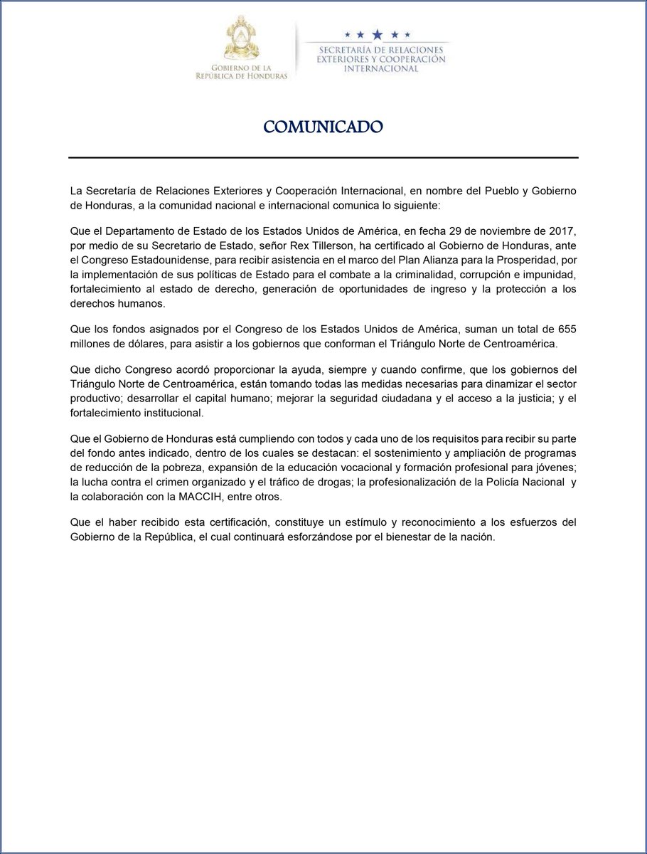 Cancillería Honduras‏ @CancilleriaHN 7 Dec 2017
