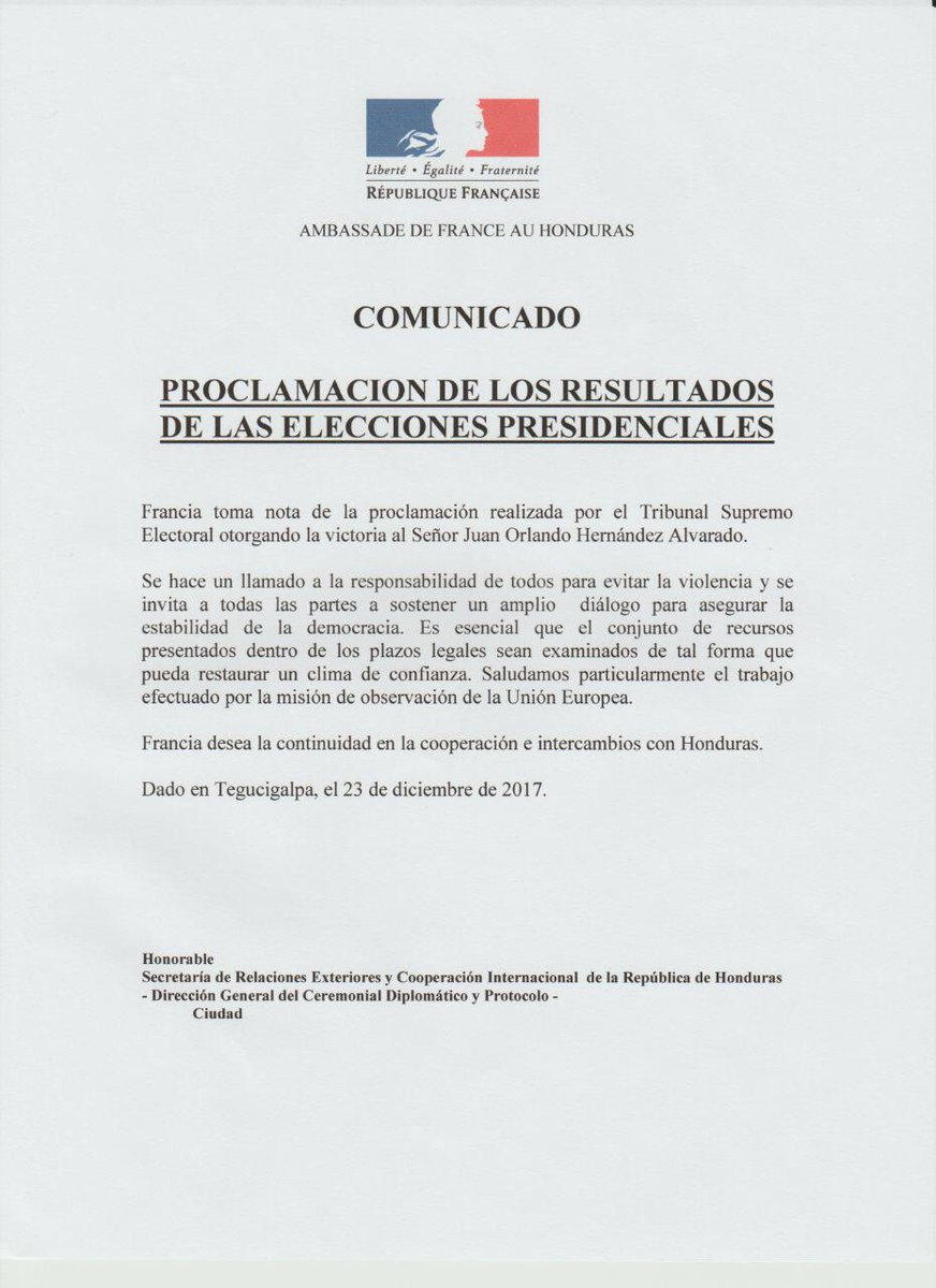 Cancillería Honduras‏ @CancilleriaHN 26 Dec 2017