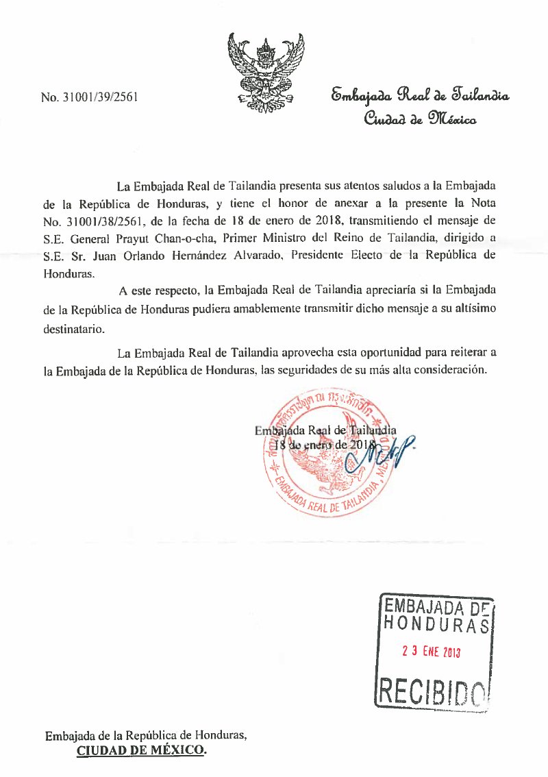 Cada dia son mas los paises que se suman a felicitar a nuestropresidente Electo Juan Orlando hoy agradecemos a la republica de Reino de Tailandia