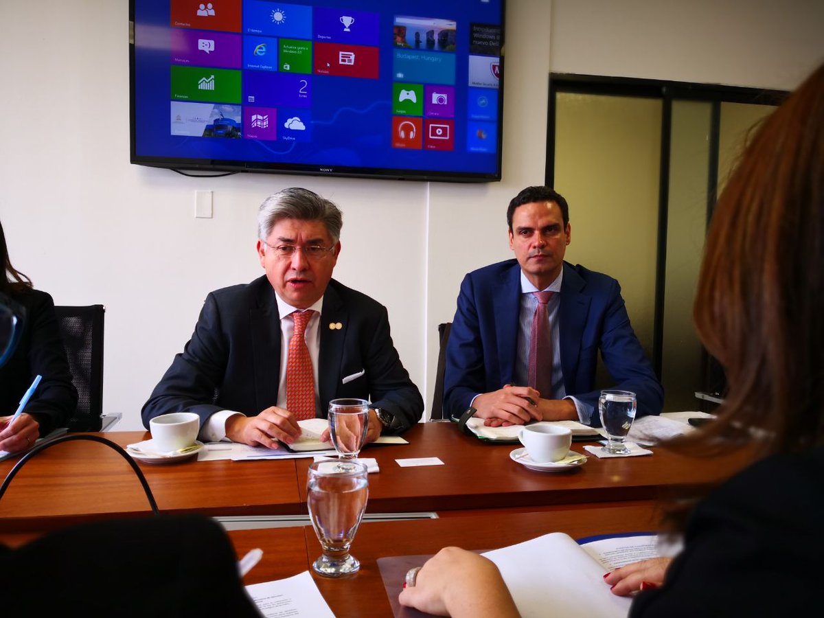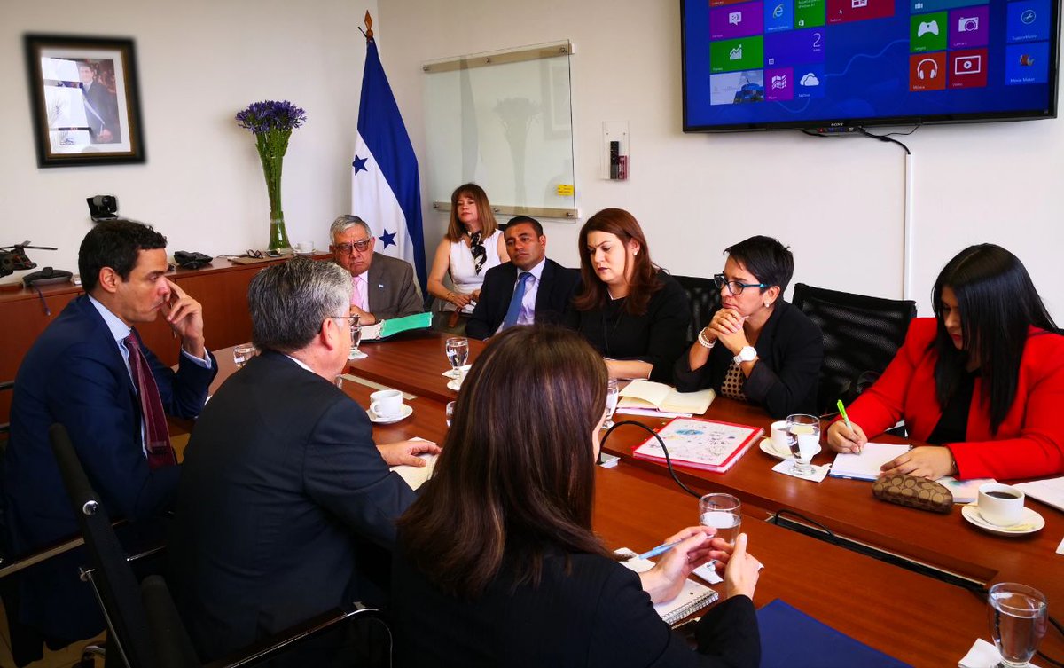 La canciller María Dolores Agüero y el Representante Permanente de Honduras ante la OEA, Leónidas Rosa Bautista, en reunión con la delegación CIDH integrada por el Relator Joel Hernandez, el Secretario Ejecutivo Paulo Abrão y la jurista Fiorella Melzi. #HondurasAvanzapic.twitter.com/TfqB30FFz8